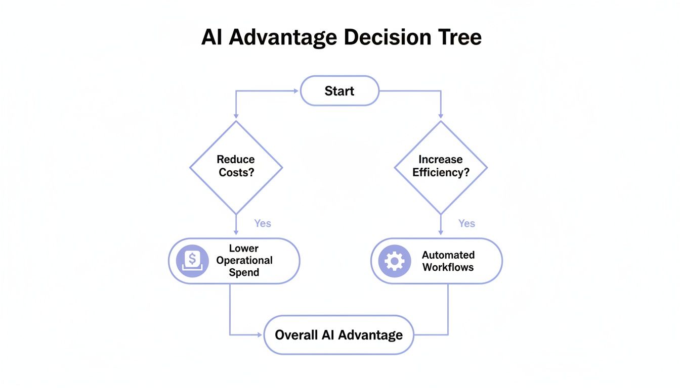 On average, businesses are seeing 34% gains in operational efficiency and 27% cost reductions within just 18 months. These aren't small wins; they're proof that AI automation is critical for survival in today's market. You can dig into more of these AI adoption statistics and see the impact for yourself. The strategic advantage AI offers is no longer a secret—it’s a requirement.
