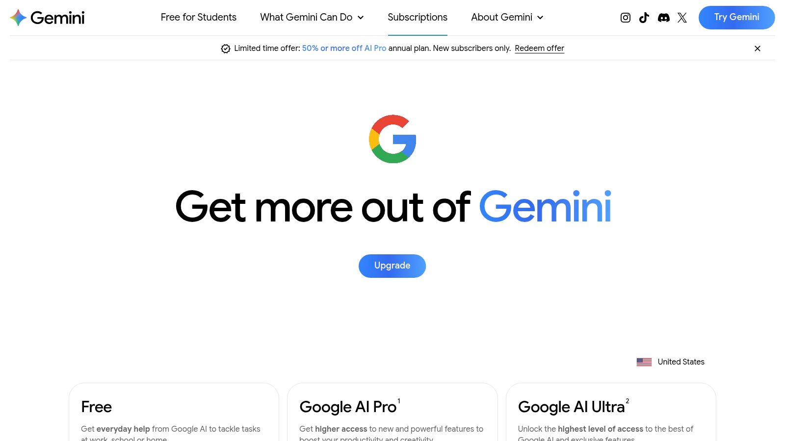 - Gemini (Free): Standard access to the Gemini Pro model.
