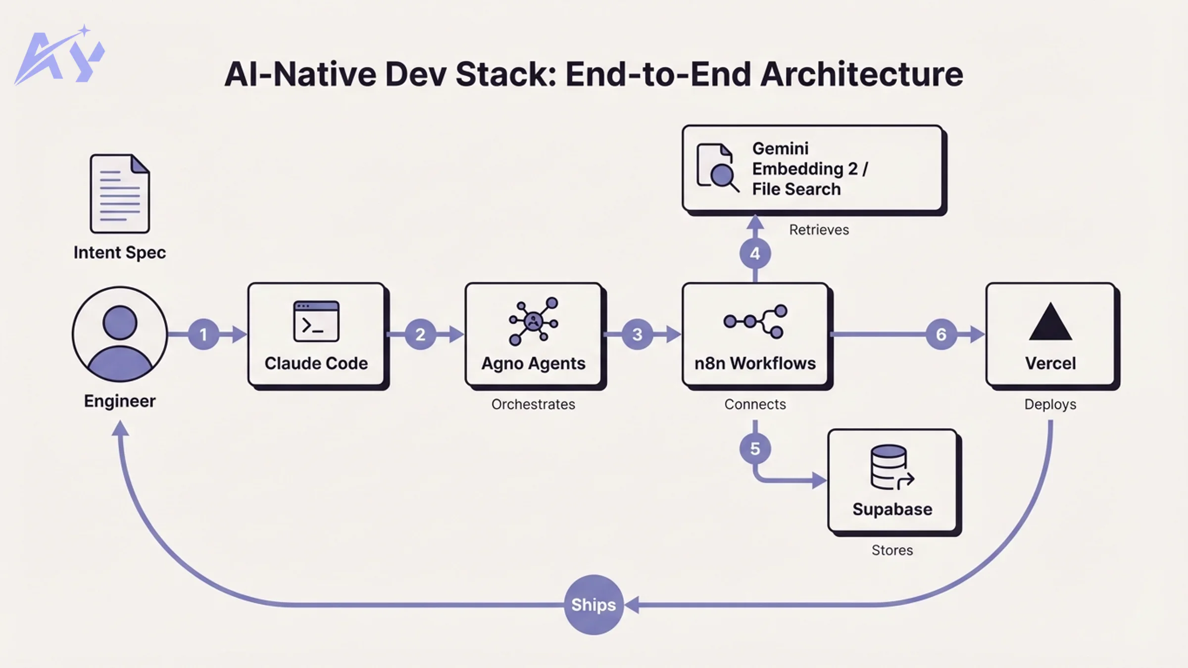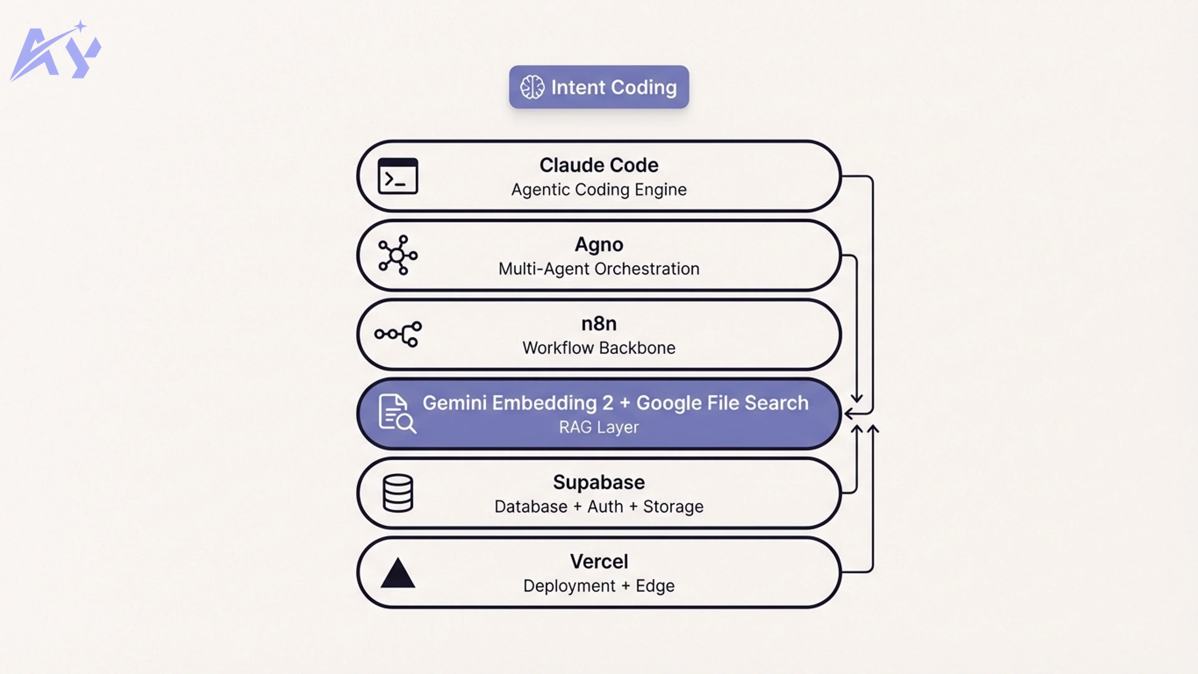 This is not a vendor roundup. It is a working configuration. Every tool listed here is in active production use at AY Automate. We will cover how each one fits into what we call intent coding: the practice of specifying outcomes precisely enough that the stack executes autonomously, with engineers focused on judgment rather than implementation.