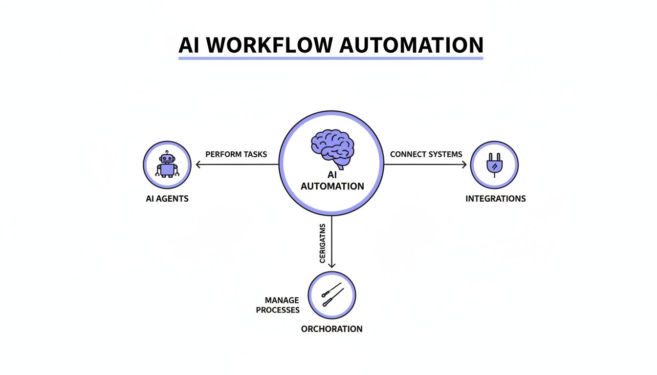This map shows how AI Agents, Integrations, and Orchestration all fit together, with AI Automation running the show.
