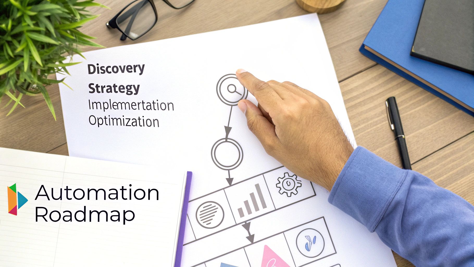 Getting started with AI-powered workflow automation isn’t some giant, intimidating leap into the dark. Think of it more like a series of deliberate, smart steps that build on one another. A solid roadmap takes the guesswork out of the equation, making sure every automation you build adds real value from day one and helps create a scalable, efficient foundation for your business. This is how you get from a cool idea to measurable impact.
