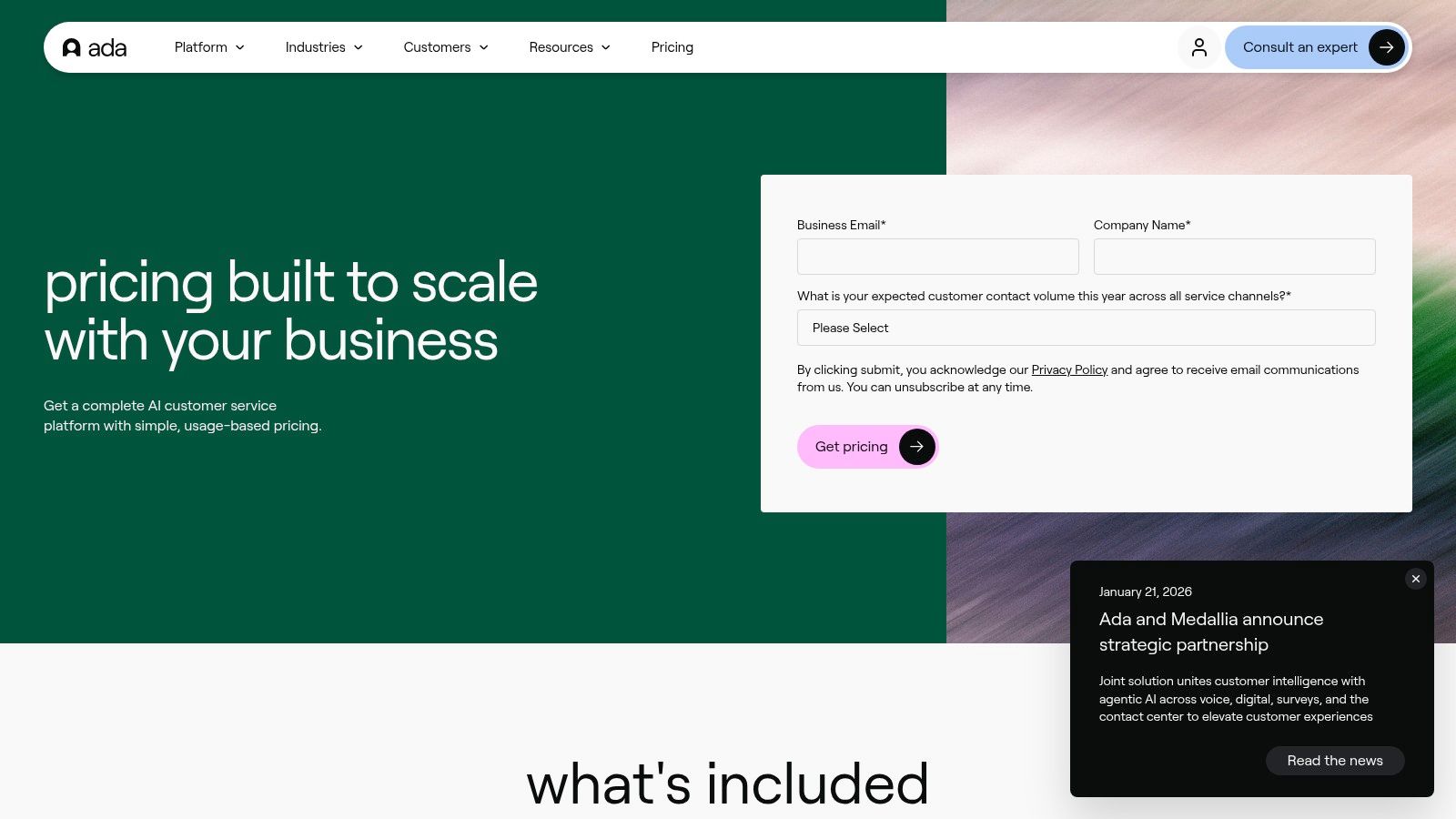 Ada delivers an enterprise-grade AI agent designed for comprehensive customer service automation across chat, email, and voice channels. It stands out by moving beyond simple chatbots, employing multi-model reasoning to handle complex queries. This allows it to deeply integrate with business systems to perform actions, not just provide information from a knowledge base. You can configure the agent’s persona and tone to ensure brand alignment, making it one of the best AI agents for customer support in large organizations seeking consistency.