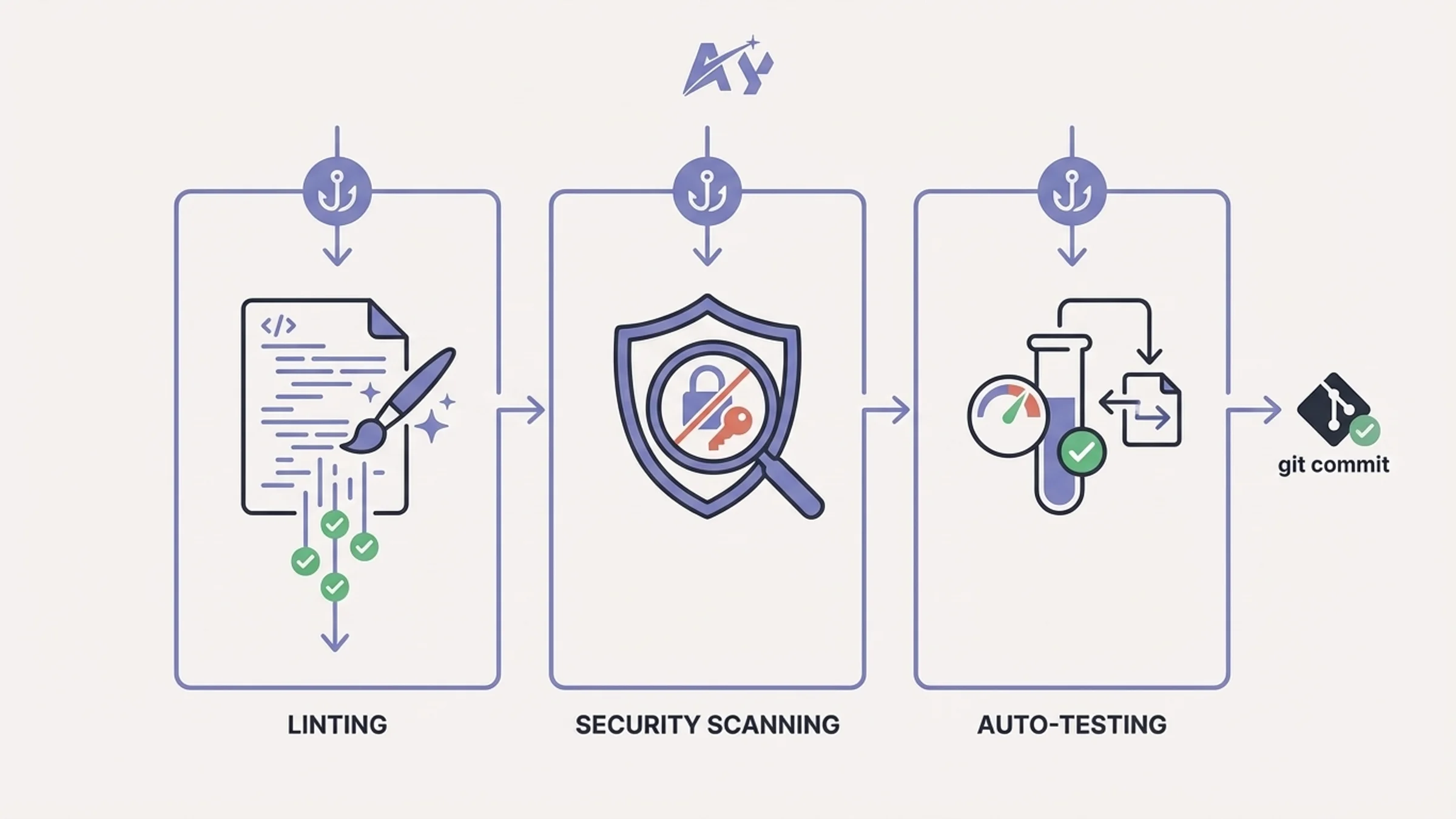 If you have never used hooks before, start with two: the pre-commit linting hook and the security scanner. These two alone will prevent the most common issues with AI-generated code reaching your repository in a bad state.