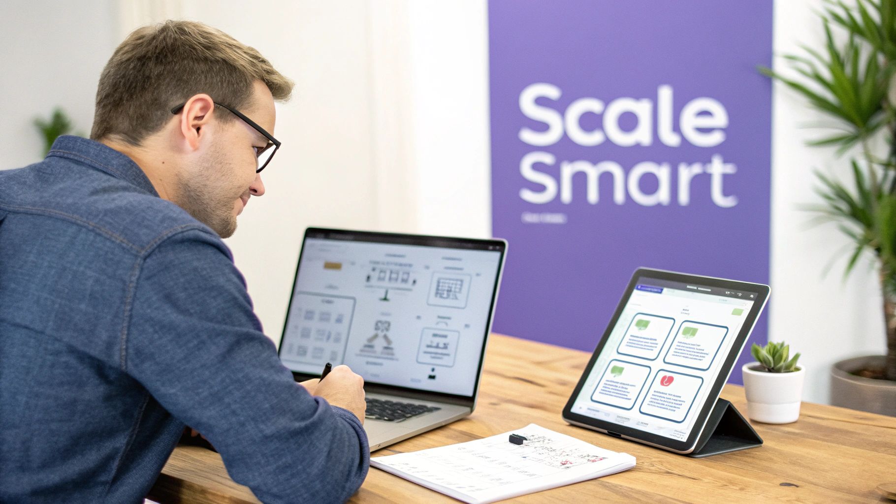 To truly scale content creation, you have to stop thinking about adding more people and start building an intelligent system—one powered by AI and smart automation. This is about more than just writing tools; it’s about implementing custom AI agents, redesigning your workflows, and bringing in specialized AI talent through AI team augmentation and AI adopted engineers placements to augment your team.